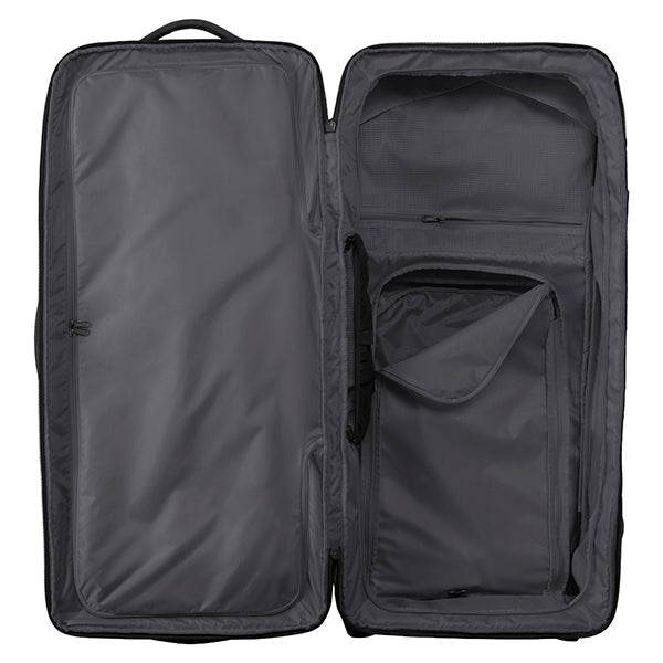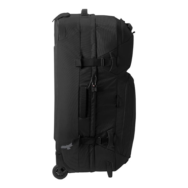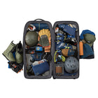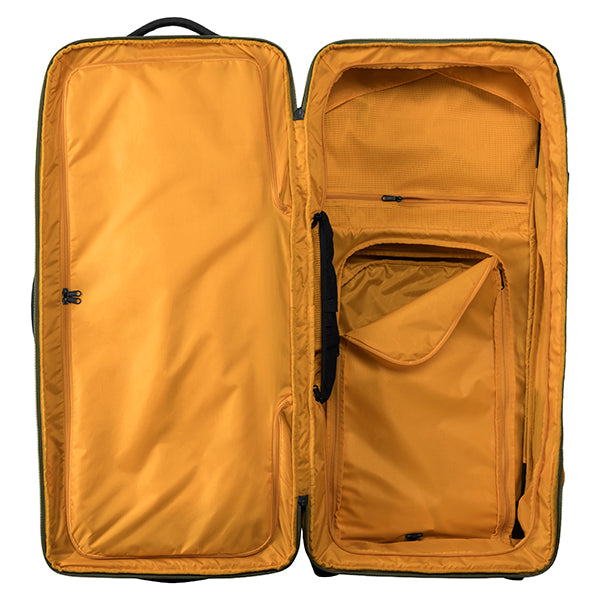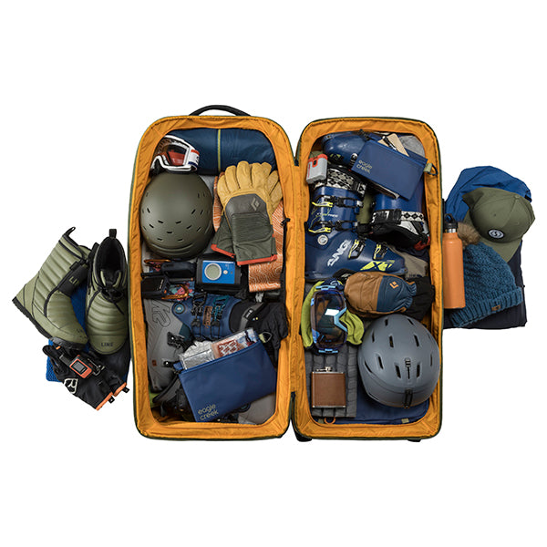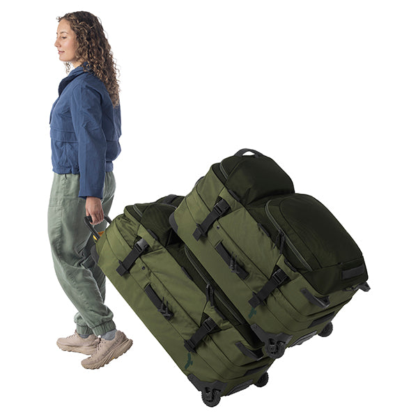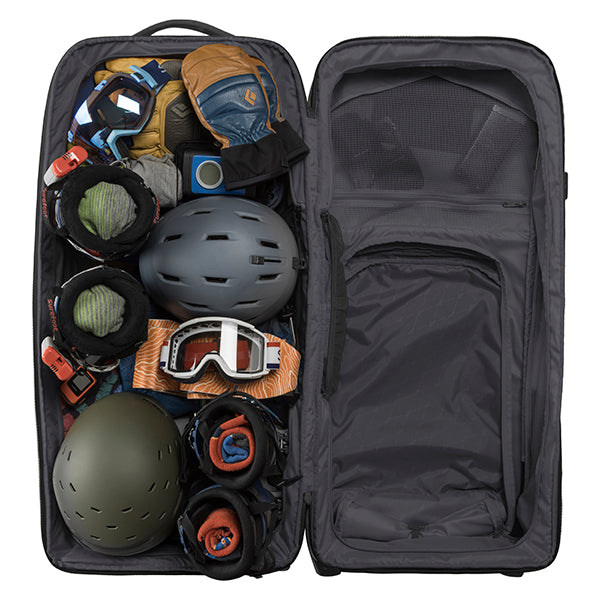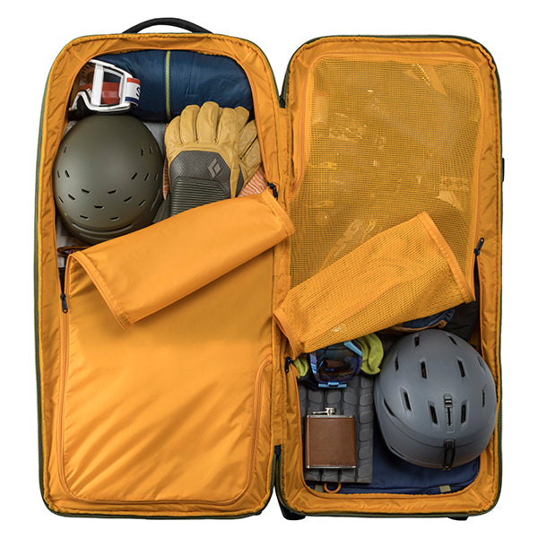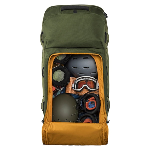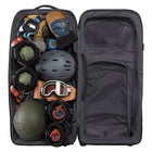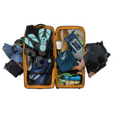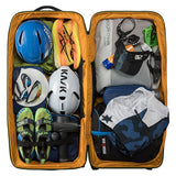 2〜3週間以上の長期遠征や、荷物が多くなりがちな海外旅行、長期間の出張、悪路を伴う移動など、あらゆる過酷なシーンに対応します。まさに、タフな旅を求めるプロフェッショナルに向けた設計です。その秘密は、頑丈な内部フレームとスチールロッドによる強力なサポート構造です。さらにコーナー部分が補強されており、衝撃を受けやすい過酷な環境でも安心して使い続けることができます。本体には環境に配慮した100%リサイクル生地を採用。メイン収納は大きく開くクラムシェル型で、パッキングや荷物の出し入れもスムーズに行えます。内部には、荷物の量や種類に合わせてスペースを拡張・分割できる「3-in-1の仕切り」と、荷崩れを防ぐ圧縮ストラップを装備しています。また、便利な「ジップアウェイカーゴネット」を使えば、ヘルメットなどのかさばる道具をバッグの外側に固定できるため、収納スペースを最大限に活用可能です。高耐久なホイールと頑丈なハンドルは、重い荷物を積んだ状態でも軽快な移動をサポートします。中央ロックポイント付きのジッパーや、紛失時に役立つトラッカーポケットも備えており、高い安心感と快適さを提供します。