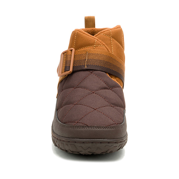 キャンプやタウンユースで気軽に履ける軽量なスリップオンシューズはCHACOならではのストラップデザインも健在です。履き口は広くデザインされているので脱着しやすく、甲部分のストラップを、タイトにもルーズにも調整をして好みのフィット感が得られます。表面は撥水性のあるキャンバス素材を使用。内側はソフトフリースの裏地が柔らかく、保温性を上げ、履き心地を良くしてくれます。キャンプファイヤーのそばでくつろぐときも、一日中足元を快適に保つデザインの1足です。Chaco(チャコ)独自のフットベッド、LUVSEATの快適な履き心地とグリップ性の高いアウトソールの組み合わせたランブル ラゲットキャンバスで、フィールドや街に踏み出しましょう。