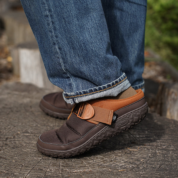キャンプやタウンユースで気軽に履ける軽量なスリップオンサンダルはCHACOならではのストラップデザインも健在です。履き口は広くデザインされているので脱着しやすく、甲部分のストラップを、タイトにもルーズにも調整をして好みのフィット感が得られます。表面は撥水性のあるキャンバス素材を使用。内側はソフトフリースの裏地が柔らかく、保温性を上げ、履き心地を良くしてくれます。キャンプファイヤーのそばでくつろぐときも、一日中足元を快適に保つデザインの1足です。Chaco(チャコ)独自のフットベッド、LUVSEATの快適な履き心地とグリップ性の高いアウトソールの組み合わせたランブル ラゲットキャンバスで、フィールドや街に踏み出しましょう。