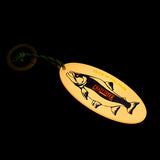 リアルなサーモンとピンクの組み合わせに釘付け!なオーバルデザインのキーホルダー。しかも暗闇では蓄光がきらりと光るのでもう目が離せません!