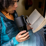 満足感のある26オンスの大容量でありながら、オフィスやアウトドア、移動中など、どこへでも手軽に持ち運べます。手にフィットする曲線ボディと、丈夫なハンドルを備えており、外出先への持ち運びも快適です。Climate Lock™真空断熱技術により、温かいコーヒーやお茶はもちろん、冷たい飲み物も、様々な飲み物を飲み頃温度で長くキープします。屋内外を問わず様々な用途で活躍し、最後のひと口まで風味を損ないません。