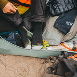 ・クッション:足元にソフトなテリー織りのループを備え、反発性を高めるとともに、脚部に的を絞ったクッショニングを施し、ブーツのシューレースの圧力から保護します。