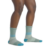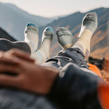 メリノウールをDARN TOUGH VERMONTソックス独自のニッティング技術により密度の高く弾力性のあるループ編みにより高いクッション性で衝撃を吸収し、アンクル上部には、ずれにくいリビングを施し適切なフィットを実現した靴下です。
