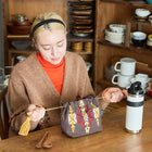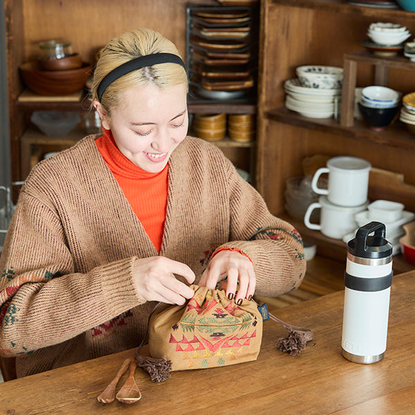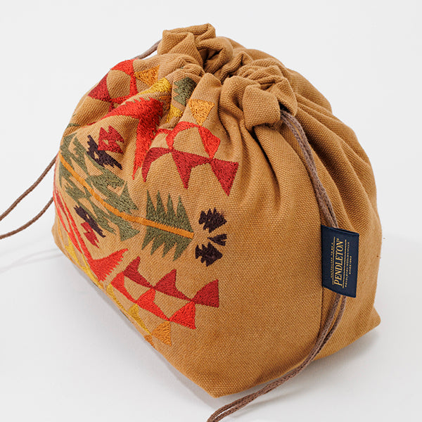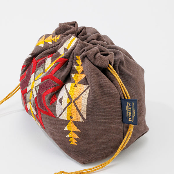 ペンドルトンの独自のデザインが刺繍で施された巾着型ポーチです。コスメやアクセサリーなどの小物を収納するのにピッタリのサイズ感です。