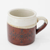 何とも愛嬌のあるぽってりとしたフォルムの萬古焼(ばんこやき)のマグカップ。萬古焼は、三重県で江戸時代から続く伝統的な陶器で、17世紀に発展しました。主に三重県産の陶土を使用することで、その土の特性から独特の風合いが生まれます。萬古焼は、シンプルでありながらも美しい自然な色合いと質感が特徴です。伝統的な焼き物は飾っておくための物もありますが、萬古焼は、日常生活で使う道具としての焼き物。毎日気軽に使っていただけます。素朴な投機に合わせて、ペンドルトンの2種類のデザインをシンプルなブラウンで焼き付けました。