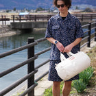 オープンカラーの襟元がカジュアルでありながらも品のある印象を与え、総柄デザインがシンプルなコーディネートに華やかさをプラスします。シンプルなTシャツの上からサラッと羽織るだけで、おしゃれなアクセントに。裾のドローコードを絞ることでシルエットを変えて楽しむことができ、コーディネートの幅も広がります。