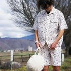 さらに、同じデザインのショートパンツと合わせることで、統一感のあるスタイリッシュなセットアップが完成します。タウンユースからリゾートシーンまで活躍する一枚です。