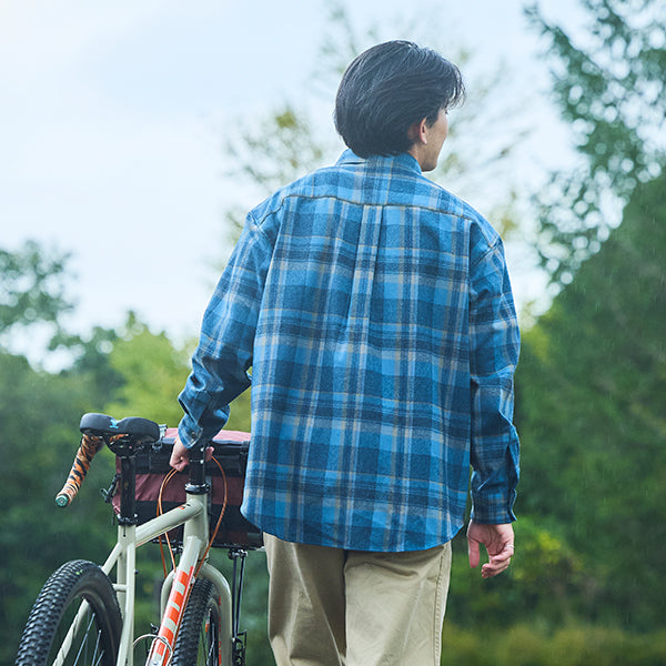 ペンドルトンが誇るウマティラウール100%の生地を使用し、素材そのものが持つ自然の調温機能や防臭性といったウール本来の魅力を最大限に活かし、肌寒い季節の街歩きはもちろん、キャンプやサイクリングなどの軽いアクティビティにもストレスなく快適に着用できます。