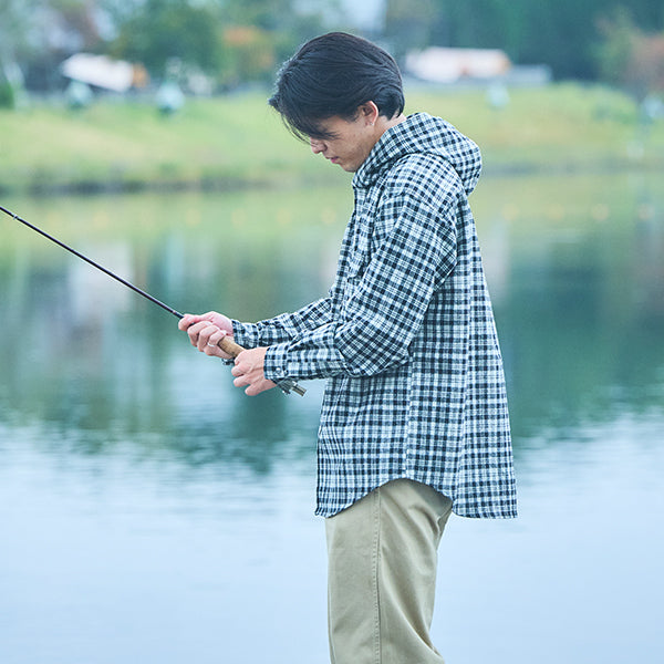 ペンドルトンが誇るウマティラウール100%の生地を使用し、素材そのものが持つ自然の調温機能や防臭性といったウール本来の魅力を最大限に活かし、肌寒い季節の街歩きはもちろん、キャンプやサイクリングなどの軽いアクティビティにもストレスなく快適に着用できます。フード付きのウールシャツは、街でもアウトドアでも、突然の風や冷えからしっかりガードします。