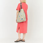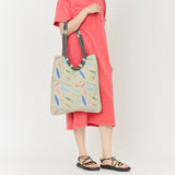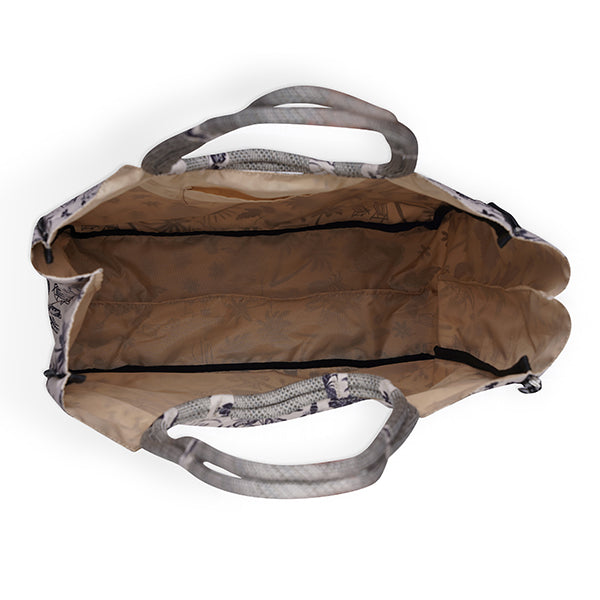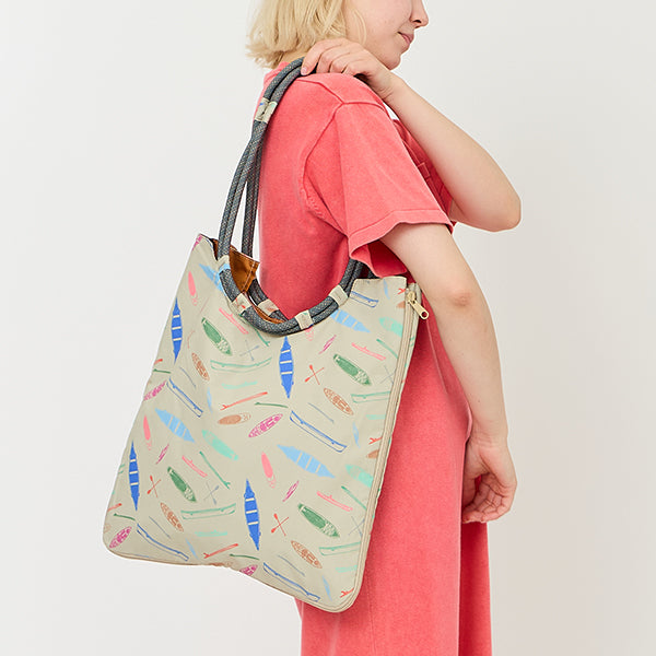 バッグの両サイドから底面までぐるっとジッパーがついていて、閉めればマチが小さいトートバッグに、開ければマチの広いトートバッグになるので用途に応じて使い分けられます。ハンドル部分はカブーらしいロープ素材で、肩にかけられるくらいの長めの設定なので重い物の持ち運びで手が疲れることもありません。また、片方のロープを肩にかけたままバッグの中の物を出し入れできます。素材は耐水性のあるポリエステル素材でできているのでお買い物バッグとしても、ビーチに遊び行くときの水着やタオルの持ち運びにも最適です。