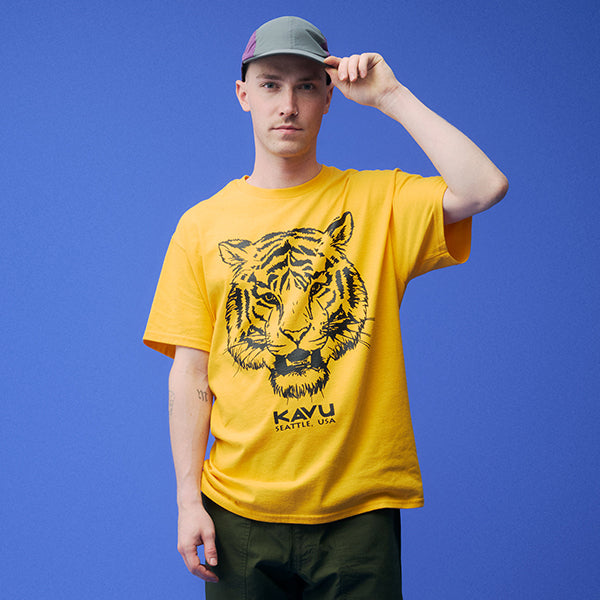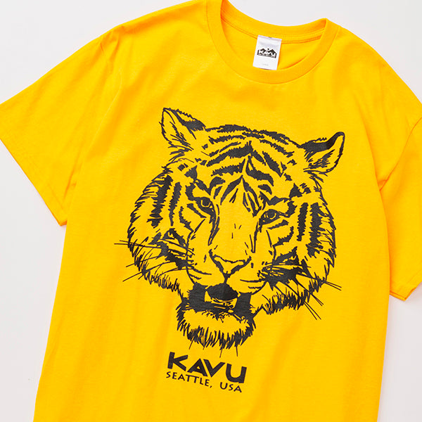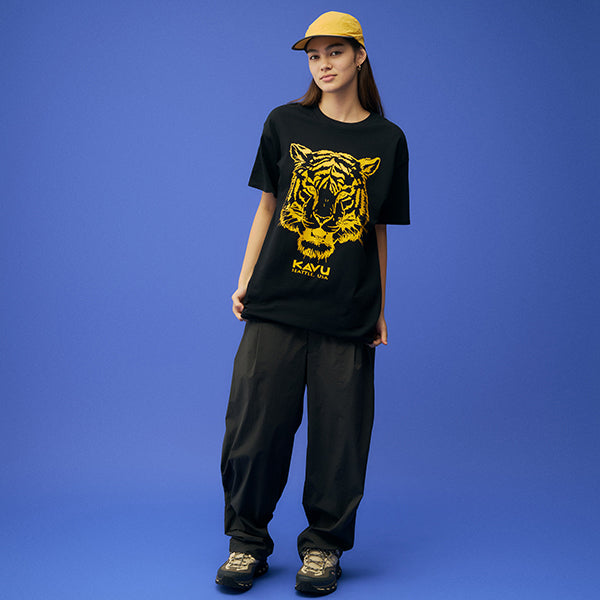 力強く美しいトラを大胆にプリントした一枚。まるで野生のトラのようにインパクト抜群です。トラのワイルドな魅力を身に纏い、どこへ行っても目を引くスタイルで一日を楽しみましょう!