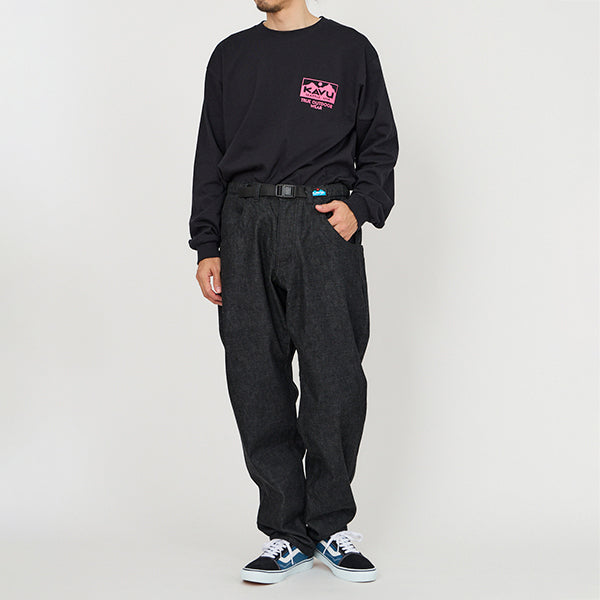 定番のチリワックパンツをデニム素材でお届けします。ウエスト部分に付いたウェビングベルトは、片手で素早くサイズ調整が可能。タフで耐久性の高いデニムを採用で、岩場や焚き火といったアウトドアシーンでも気兼ねなく穿くことができ、使い込むほどに風合いが増していきます。ゆったりとしたワイドなシルエットは、どんな動きも妨げないリラックスした穿き心地で、股下にはガゼットクロッチが施されており、激しい動きにも対応します。大きくデザインされたバックポケットはスマートフォンなど日常の小物をスムーズに出し入れできる設計です。ジャパンフィット(日本向けのサイズ)ですのでサイズ選びの参考にしてみてください。