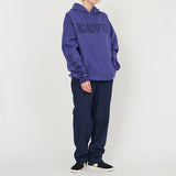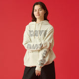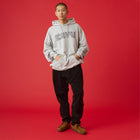 個性的なグラフィックが際立つプルオーバーフーディー。フロントの立体的なロゴと、袖に大胆にプリントされたねじれたようなタイポグラフィがデザインのポイントです。しっかりとした生地感でフードの立ちも良く、1枚でスタイリングの主役になります。ストリートファッションはもちろん、きれいめなアウターと合わせたミックススタイルにもおすすめ。着心地の良さとデザイン性を両立させた、こだわりのアイテムです。ジャパンフィット(日本向けのサイズ)ですのでサイズ選びの参考にしてみてください。
