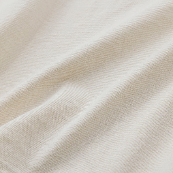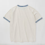 デザインには、1980年代アメリカで流行したリンガーデザインを採用。首まわりと袖口に施されたパイピングがレトロで古着ライクな表情を生み出し、着るだけでコーディネートにポップなアクセントを加えてくれます。さらに、プリントには特別なヴィンテージ加工を施しました。版を最初からひび割れた状態にし、特殊なブリーチ加工を加えることで、まるで長年愛用したように味わい深く仕上げました。ジャパンフィット(日本向けのサイズ)ですのでサイズ選びの参考にしてみてください。