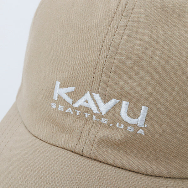 KAVU カブー ロゴキャップ はブランドネームをシンプルに魅せる、ミニマルで洗練されたデザインが特徴の定番キャップです。