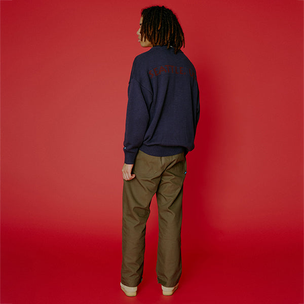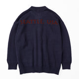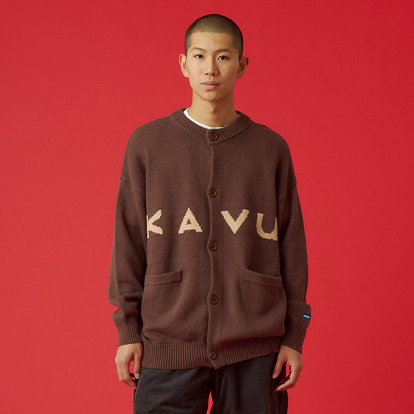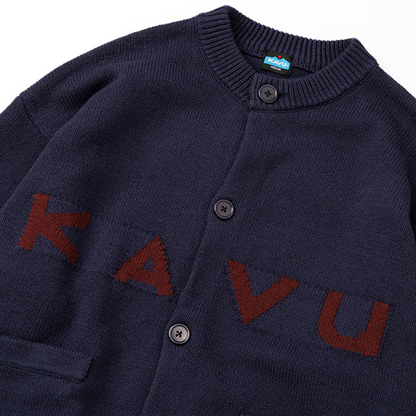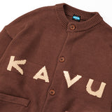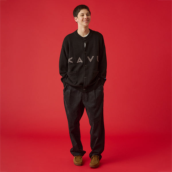 シンプルなシルエットのニットカーディガンは秋冬に大活躍するアイテム。 デニムに、コーデュロイのパンツに合わせてもこれから長く愛用頂ける1枚!中にシャツを合わせて襟を出してもいいですね。キャップやビー二―に合わせてカジュアルに着こなしたり、スラックスパンツのような落ち着いたアイテムと合わせて、ちょっと崩したコーディネートも楽しめます。KAVUロゴを冬アイテムのニットに落とし込み、1年中KAVUを楽しんでいただけるようにしました。