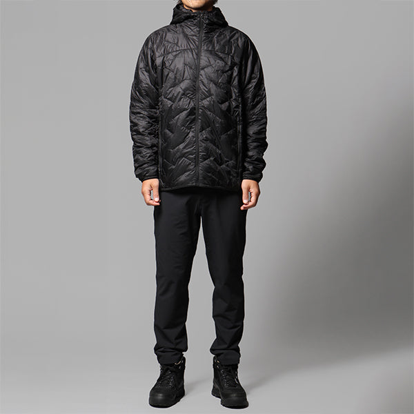 軽量で保温性も高く、通気性もあるバランスの良いインサレーションで、寒い季節にシェルの下に重ね着したり、山岳地帯で単独で着用するのに適しています。このジャケットで使用しているインサレーションは、VerticalX™ SuperStrandテクノロジーを採用し、軽量で通気性に優れながらも抜群の保温性を発揮します。bluesign®認証のリップストップナイロン素材を使用し、軽度の耐水性と防風性を備え、予測不能な天候下でも頼りになる一着です。断熱フードは、すっきりとしたシルエットを保ちながらも保温性を高めます。超軽量で非常にコンパクトに収納でき、ジッパー付きハンドポケットを備え、左手のポケットはスタッフサックとしても機能し、素早く簡単に収納できます。袖口と裾には伸縮性のあるバインディングが施され、悪天候の侵入を防ぎ、アクティブなアクティビティ中の快適性を高めます。