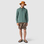 ストレッチ性を備えたこのパーカーは、通気性がありながら防風性が高く、トレイル ランニング、バックカントリーツーリング、風の強いビーチでの散歩に最適なアウターレイヤーです。使用しないときは丸めてジャケットの襟に収納できるフード、必需品を収納できるジッパー付きポケットが特徴です。ジッパー付き胸ポケットをスタッフサックとして使用できるので、小さくまとめて収納するのにも便利です。