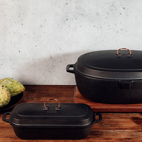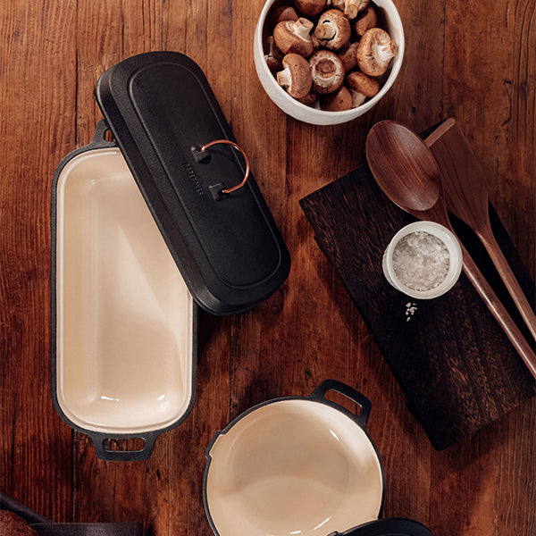 滑らかで焦げ付かないエナメルの使い勝手の良さと鋳鉄の絶対的な耐久性、いいとこどりの新しいエナメルキャストアイアンコレクション。