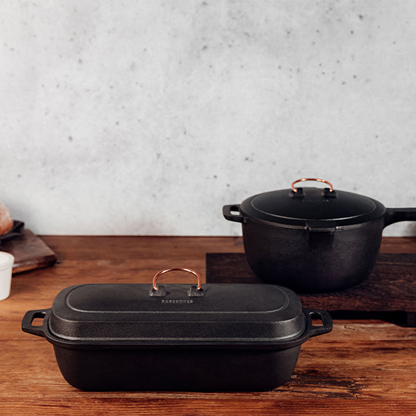 Barebones ベアボーンズ エナメルライン キャストアイアン スキレット レクタングラーベイキングパンは内側が琺瑯加工された鋳鉄製のベイキングパンです。