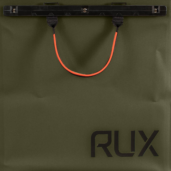 雨に濡れても雨水の侵入を防ぐ安心なゴム製の開閉部が特徴で、パッド入りの蓋は三つ折りにできるのでボックスの中身に簡単にアクセスすることができます。使用しない時にはRUXボックスの中に収納することができ、取り外してシートとして座ることもできます。