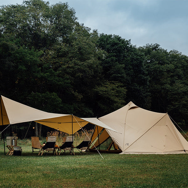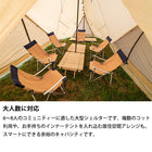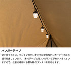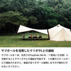 ・付属品:本体、センターポール、サブポール×4、ハンガーテープ×2、ペグ×20、3mロープ×8、2mロープ×8、キャリーバッグ、ポールケース、ペグ・ロープケース