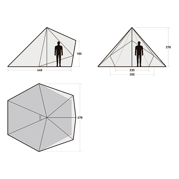 ・付属品:本体、センターポール、フロントポール、サイドポール×2、ハンガーテープ、ペグ×14、3mロープ×5、2mロープ×6、キャリーバッグ、ポールケース、ペグ・ロープケース