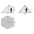 大きなフルメッシュにもなる開放的なフロントパネル。外観も良いですが、内部から外を眺めるのも最高な開口部です。また、前傾したサイドパネルのベンチレーションは、雨が入りにくく、かつ美しいカタチを決定づける秀逸なデザインです。背面から見ると、ワンポールテントのようなカタチでありつつ、フロント部分の3本のポールにより、十分な広さを確保した快適なおこもり空間になります。細かなディテールも素敵です。