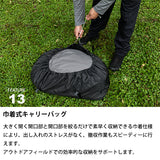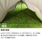 ・内容:本体、インナーテント、センターポール、フロンポール、ペグ×16、3mロープ×1、2mロープ×8、キャリーバッグ、ポールケース、ペグ・ロープケース