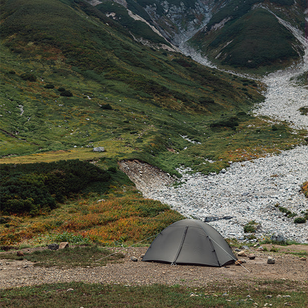 SABBATICAL サバティカル リネル1は、山岳地帯で求められる強度と軽量性、設営のしやすさを兼ね備えた1人用バックパッキングテントです。