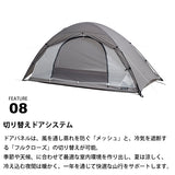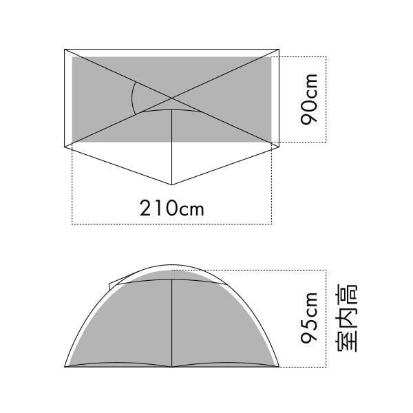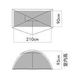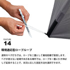 ・内容:本体、インナーテント、フレーム、ペグ×12、2mロープ×4、キャリーバッグ、ポールケース、ペグ・ロープケース