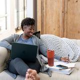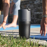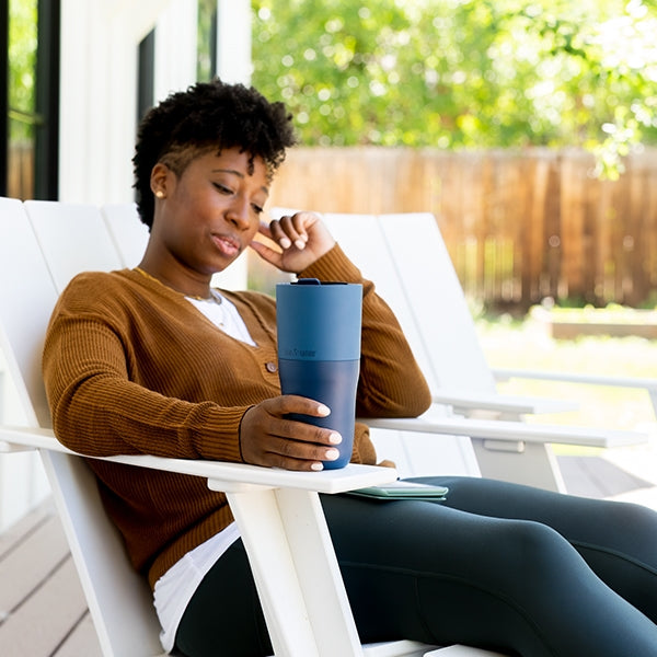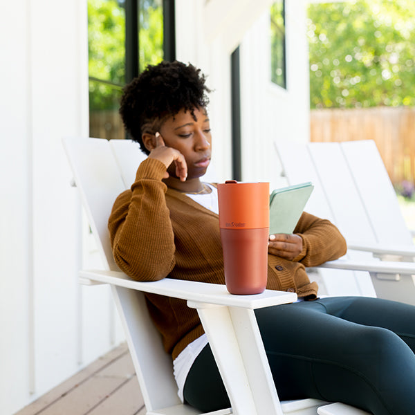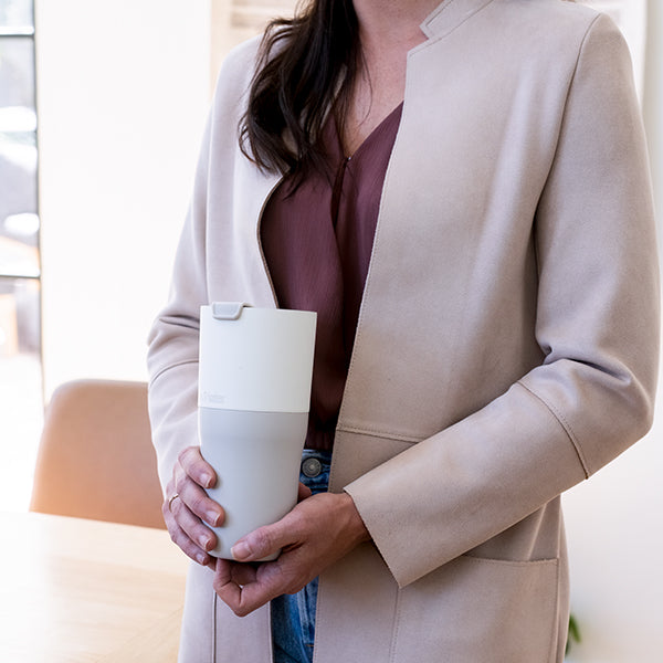 ほどよい丸みがあり心地よく手にフィットするデザインで、シリーズでいちばん大きなサイズです。マットで滑りづらい質感に加えタンブラーの下部は細くなっているので、片手でもお持ちいただけます。大容量のタンブラーはジムでの水分補給にもぴったりです。長時間のドライブでもお気に入りのドリンクを充分にお楽しみいただけます。保冷保温効果のある断熱素材を使っているので、大容量でもドリンクの美味しい状態をキープしてくれます。