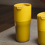 付属の専用蓋は、保温保冷効果を高め、転倒時にドリンクが全てこぼれてしまうことを防ぎます。(※防水ではありません)蓋は開けた部分を反対側へロックすることができ、飲み口が広いのでドリンクの香りも充分に楽しめます。リム(ふちの部分)を薄くデザインしたことで口当たりがよく、蓋を外して使用することも可能です。あなたのライフスタイルに合わせて、室内でもフィールドでもお好みのドリンクを楽しんでいただけます。