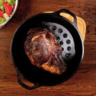 調理の際に鍋底に敷き、肉や野菜の焦げつきを防ぎます。また、水分や油を落として蒸し鶏などが作れます。10インチ以上のLODGE社製品でお使いいただけます。