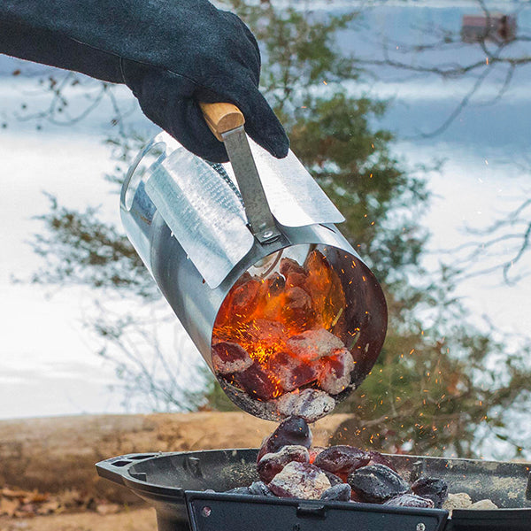 120年余りの歴史があるLODGE(ロッジ)社の火起こし器です。BBQでまず始めること、それは炭やチャコールブリケットに着火することです。