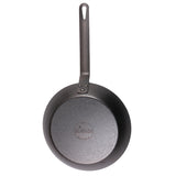 10インチ(内径26cm)で、ステーキなどを焼くにも充分なサイズです。持ち手が長く調理の際にも扱いやすく、気軽に使っていただけます。ご家庭ではもちろん、焚火などでも使えるのでキャンプにもお勧めです。