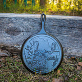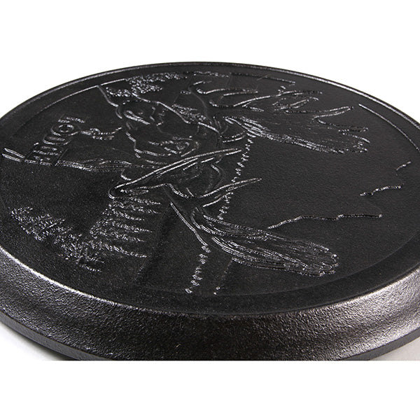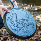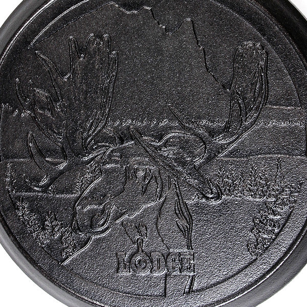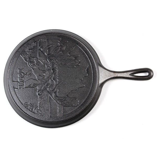 120年余りの歴史があるLODGE(ロッジ)社のラウンドグリドル(薄型フライパン)です。裏側にムースがデザインされています。