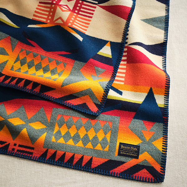 PENDLETON ペンドルトン ローブ ファイヤーレジェンド ZE475はテクニカルウエアーなど化繊繊維がアウトドア市場をにぎわしている中でも、保温性と耐久性、撥水性を持ち合わせた地球にやさしい天然素材として注目を集めているウール素材を使った大判サイズのブランケットです。