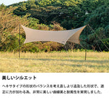 ・内容:本体×1、ポール×2、ハンガーテープ×2、ローダウンテープ×2、ペグ×8、8m2又ロープ×2、3mロープ×4、キャリーバッグ、ポールケース、ペグケース、ロープケース